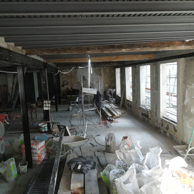 Le projet a évolué au cours des semaines au fur à mesure de la découverte de l'état général de l'ouvrage : la charpente a été, par exemple, entièrement refaite. La toiture est traitée entièrement en Zinc naturel. Les appartements se trouvant au dessus d'une boulangerie, certaines contraintes techniques ont eu une part importante dans le dessin du projet.